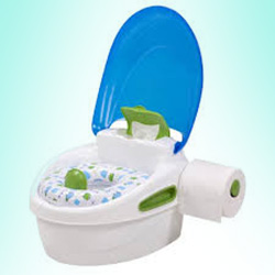 انواع توالت فرنگی سبک و قابل حمل بچه گانه از جنس پلاستیکی در مراکز فروش اقلام سیسمونی عرضه می گردد.
